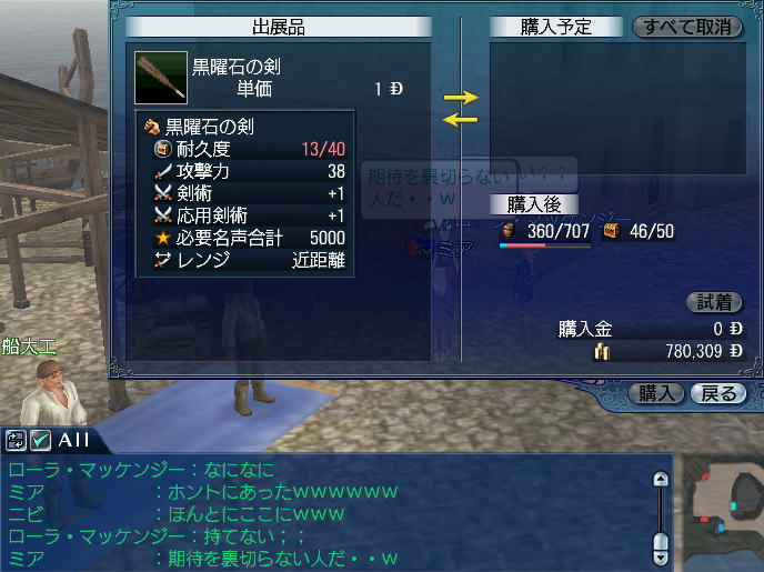 酒場マスター>ぷにぽんがこの街で黒曜石の剣を捨てたらしいぜ