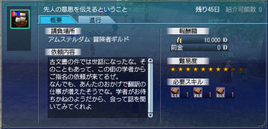 クエ出しに名声30kかかるから、ずーっと手をこまねいてたんだけど、クエさえ紹介してもらえれば副官たちとハム辞書で自力クリアできるのですよ~♪