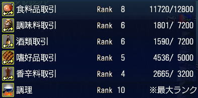 基本的に、採集と工業品取引とシェリー作成でカンストしました(´・ω・`)