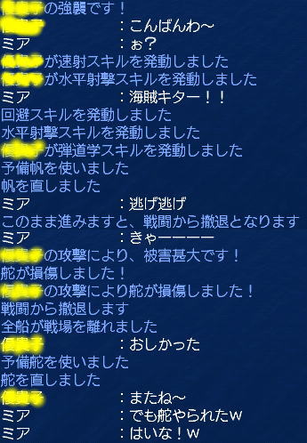 これ、PKが仕様になってるゲームだもん、海賊いる海域フラフラしてたのは私なんだし、襲われた時にはそれなりの襲われRPで楽しまんと、お互いにつまらんと思うし!